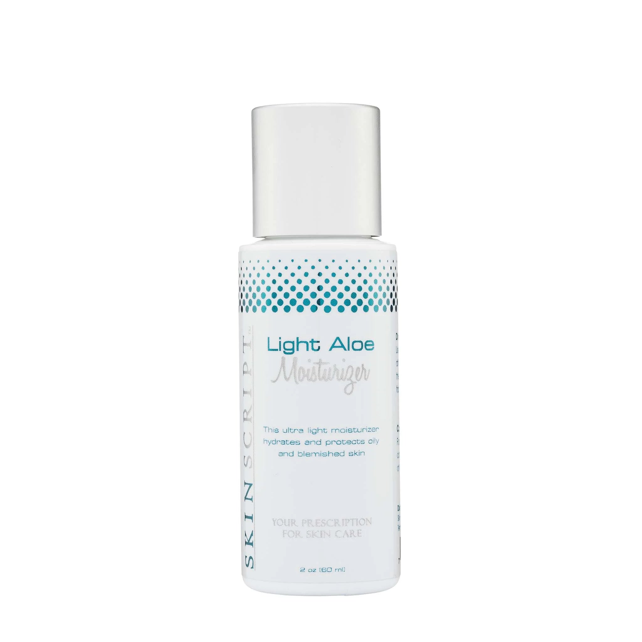 Skin Script Rx Light Aloe Moisturizer — lightweight, non-comedogenic hydration for oily, acne-prone, and ingrown-prone skin. Aloe, hyaluronic acid, allantoin, and totarol work together to soothe, hydrate, and rebalance without clogging pores. Ideal for face and intimate skincare.