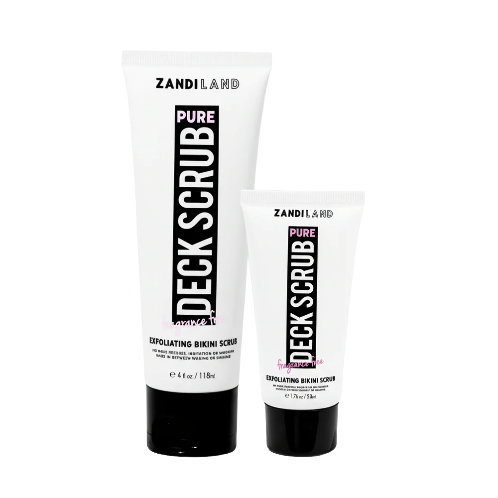 Deck Scrub PURE exfoliates your mons pubis, inner thighs, buttock and any body part . Get that good exfoliation with our no-added fragrance formula. Made with fractionated coconut oil, our PURE formula is perfect for oily or acne prone skin. Say goodbye to ingrown hairs, redness and irritation and hello to soft, smooth skin. Vegan, cruelty free and only the best for your cha cha!