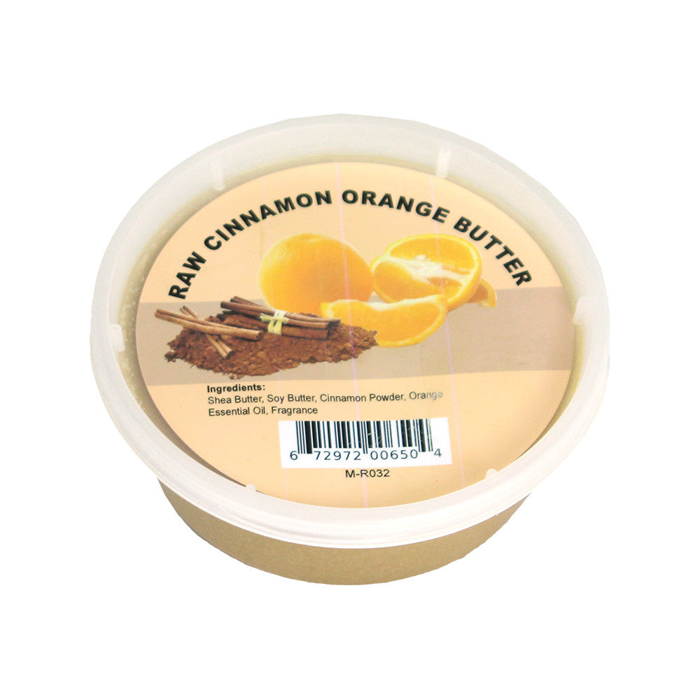 Our Raw Cinnamon Orange Butter is a spicy-sweet blend that warms your skin and awakens your senses. Made with rich shea butter, soy butter, real cinnamon powder, and orange essential oil, this whipped butter is the perfect daily moisturizer for glowing, healthy skin with a comforting scent.